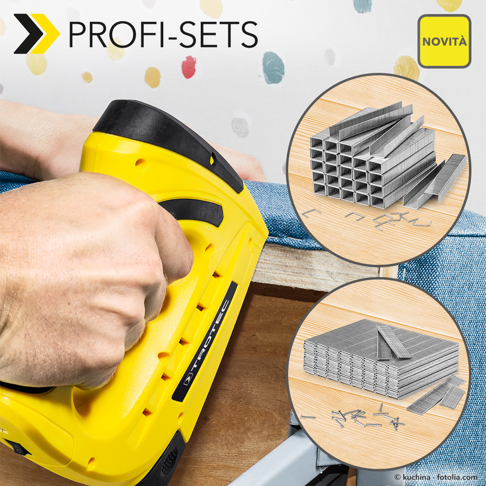 Senza fili e potente, la nuova graffatrice a batteria PTNS 10‑20V spara graffe e chiodi di fissaggio in un’ampia varietà di materiali come legno, lamina, pelle o cartone. L’elevata velocità di 30 colpi al minuto e la capacità del caricatore di 100 graffe o 50 chiodi garantiscono un rapido avanzamento del lavoro, così come la batteria agli ioni di litio Flexpower 20 V di lunga durata. E grazie alla regolazione della forza d’impatto su sei livelli, la profondità d’impatto di graffe e chiodi di diverse lunghezze può essere adattata in modo ottimale al materiale da lavorare. Inoltre, 500 graffe e 500 chiodi sono inclusi!