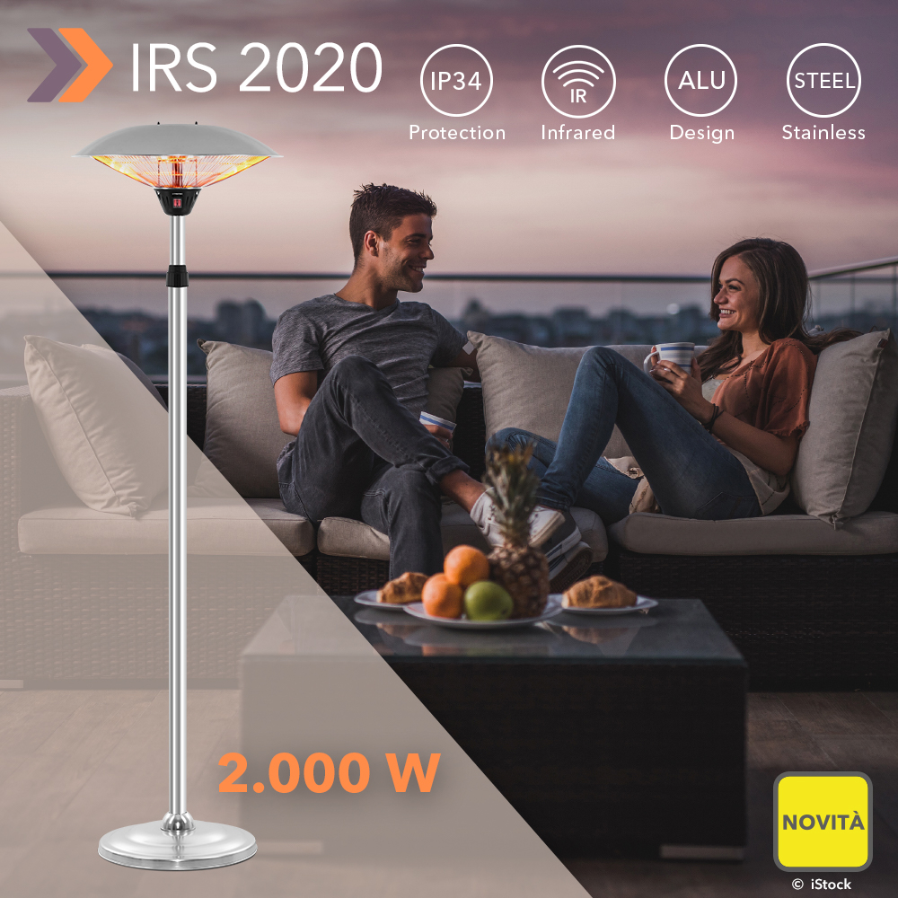 È vero, non sappiamo ancora quando ci libereremo delle attuali restrizioni di contatto, ma una cosa è certa: non appena i numeri delle infezioni diminuiranno, le terrazze del settore gastronomico e delle abitazioni private si riempiranno rapidamente di ospiti e clienti. Fino ad allora però caleranno di certo anche le temperature, e ciò non crea affatto le condizioni ideali per trattenersi all’aperto. È per questo che occorre subito attrezzare le terrazze con una fonte di piacevole calore rendendole “adatte all’inverno” per poi poter sedere in compagnia all’aperto più a lungo. A tale scopo consigliamo la nuova stufetta a colonna di design IRS 3020 di alta qualità che fornisce calore a 360° premendo un semplice tasto.