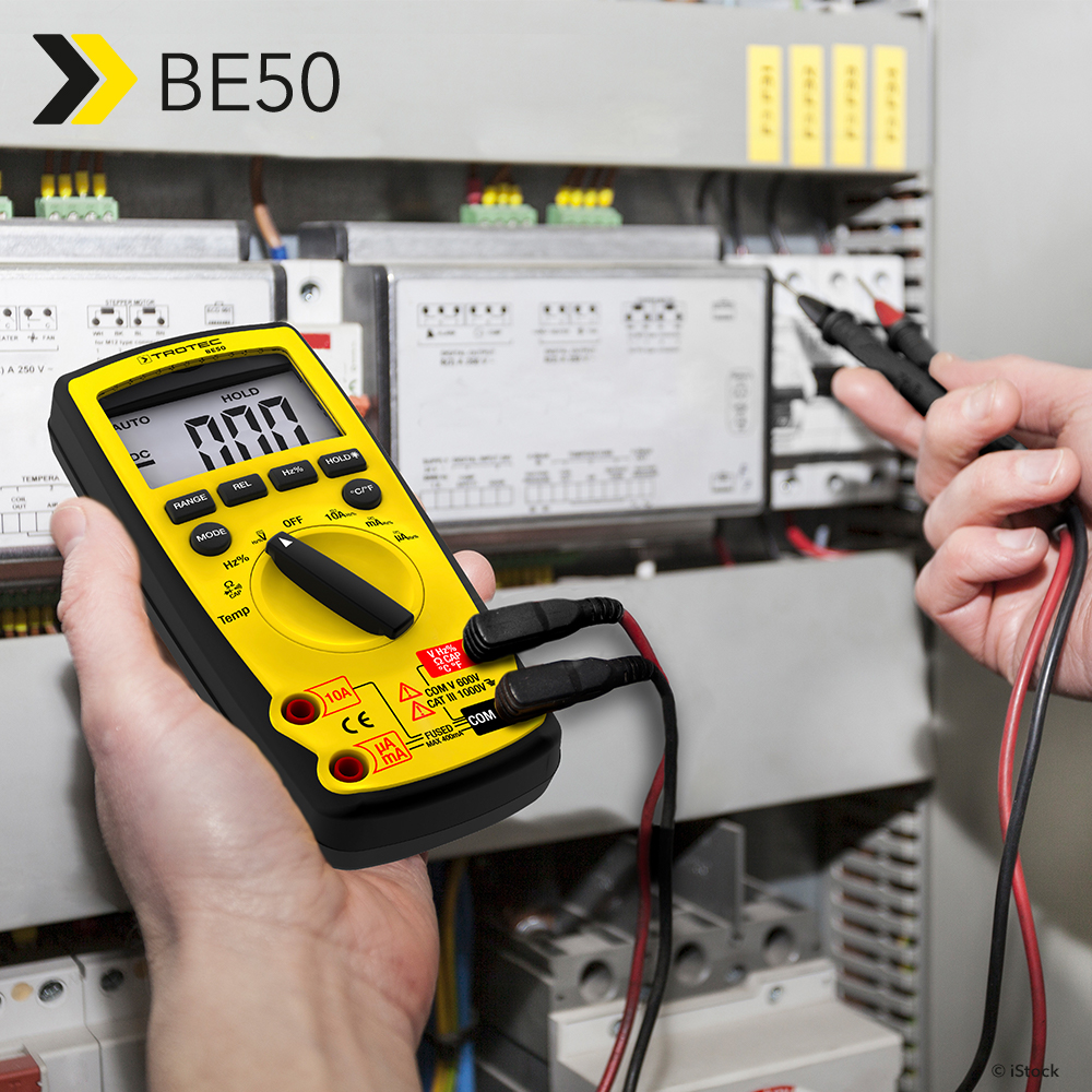 Il BE50, finalmente di nuovo disponibile, è un multimetro digitale che tutti gli esperti vorrebbero per svolgere le loro attività giornaliere. Offre loro possibilità d’impiego ottimali e non soltanto per grandezze elettriche: Con undici funzioni di misurazione in totale, selezione automatica della scala, misurazione delle temperature con sensore di contatto tipo K, funzione Hold e display retro-illuminato, questo misuratore è adatto per innumerevoli campi di applicazione in ambito commerciale o semi-professionale.