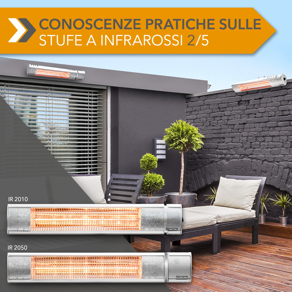 Alla domanda su quale stufetta a infrarossi sia quella gusta per la vostra terrazza preferiamo non rispondere. Dipende tutto dalle vostre predilezioni individuali: preferite la variante classica della stufetta a infrarossi a parete stazionaria? O gradite piuttosto un riscaldamento a 360° dal tetto? O magari le stufette flessibili per terrazze? Lo stesso vale per il discorso “tubi”: magari vi piace che la stufetta sprigioni una luce rosso chiaro, oppure disturba la vostra concezione illuminotecnica e preferite piuttosto una delle nostre stufe elettriche scure. Su una cosa però potete stare certi…