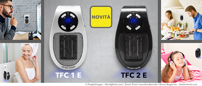 Poco più grandi di un palmo di mano ed estremamente leggeri, i nuovi termoventilatori a spina TFC 1 E / 2 E sono delle indispensabili fonti di calore sia a casa che fuori. Con questi termoventilatori mobili in valigia non avrete più i piedi freddi durante le vacanze in montagna. Dato che i termoventilatori in ceramica si infilano direttamente nella presa, non occupano spazio. Ma non è tutto! I noiosi cavi non saranno più un problema a casa e soprattutto fuori.