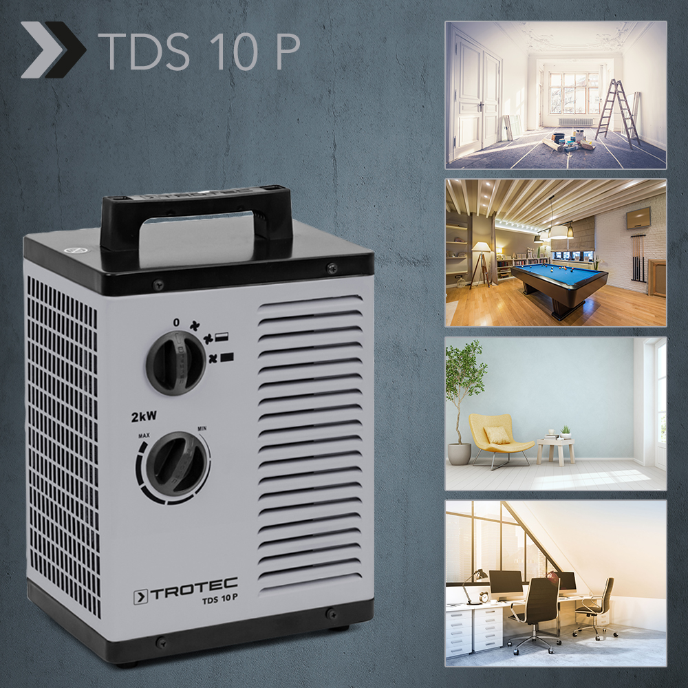 I riscaldatori elettrici sono quasi esauriti dappertutto! Ma non a Heinsberg: da Trotec infatti è nuovamente disponibile e nello store il TDS 10 P, un robusto riscaldatore elettrico in versione metallica per un riscaldamento rapido ed efficiente mediante soffiante radiale. L’estetica fredda del robusto termoventilatore di ceramica con corpo metallico grigio si contrappone al calore con cui viene accolta subito dai professionisti questa soluzione di riscaldamento. Il TDS 10 P riscalda in un attimo gli ambienti freschi grazie alla tecnologia avanzata con ceramica PTC e la potente soffiante radiale portandoli alla temperatura desiderata, senza che le condizioni operative difficili o una movimentazione brusca durante il trasporto rappresentino un problema. Fate presto prima che finiscano le scorte!