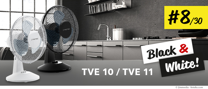 Consiglio del giorno: “Tirate fuori il vostro ventaglio!” È un oggetto elegante, che trova spazio anche nelle borse più piccole e offre molta freschezza. Ma siccome non è proprio da tutti starsene a sventagliare sul divano o in ufficio, ecco qui una valida alternativa: i ventilatori da tavolo TVE 10 e TVE 11 offrono freschezza senza fare rumore, sia a casa che in ufficio. E non è tutto: l’incredibile prezzo consente di non scendere a compromessi – perché non ordinarli entrambi?