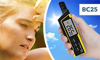 Il BC25 è uno strumento efficace e maneggevole, per misurare le conseguenze sul corpo delle alte temperature combinate con un alto tasso di umidità dell’aria. Attraverso le funzioni di allarme “Indice calore” e “Temperatura percepita” del BC25, fin dall’inizio si evitano i danni dovuti al calore e si definiscono i limiti della resistenza in caso di temperature elevate. Così lo strumento di misurazione BC25 è perfetto anche come “dispositivo di preavvertimento” per gli anziani o i malati ed è in grado di “suggerire” loro di non affaticarsi troppo nelle giornate calde.
