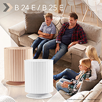 Per un clima interno piacevole pieno di freschezza, dove anche l’occhio ha la sua parte. Nella nuova variante alla moda in tonalità “champagne”, l’umidificatore B 24 E arricchisce abitazioni e uffici con un tocco di eleganza. Anche il modello equivalente B 25 E nell’elegante design in “bianco puro” crea un effetto di spicco nel vostro arredamento interno. Entrambi garantiscono un clima ambiente piacevole umidificando l’aria in modo completamente automatico attraverso il raffrescamento evaporativo naturale fino a raggiungere un livello di benessere ottimale.