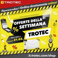 COME TROVARE LE TUE OFFERTE NEL NEGOZIO ONLINE:Sulla nostra homepage nel negozio online it.trotec.com/shop vengono visualizzati tutti gli “AFFARI PRINCIPALI”. Basta navigare con le frecce a “destra” e “a sinistra” e troverai tutte le offerte in corso. |