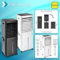 Dopo la terza ondata ci attende un’ondata di caldo e afa estiva. Ne abbiamo avuto un assaggio gli anni scorsi con giornate estive afose, terreni inariditi, temporali e forti piogge. Chi desidera prendere contromisure sostenibili per combattere il caldo e conquistare un clima piacevole per la casa e l’ufficio, troverà un alleato ideale nei nostri nuovi Aircooler di design PAE 80 / PAE 81. I rinfrescatori d’aria abbassano la temperatura ambientale senza l’uso di agenti chimici e senza compressori di raffreddamento ad elevato consumo di energia, in maniera del tutto naturale. E in maniera altrettanto naturale i tuttofare 4 in 1 non lasciano nulla al caso in termini di design, funzionalità e comfort. Il tutto a dei prezzi imbattibili!