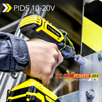 L’avvitatore a percussione a batteria PIDS 10-20V è lo strumento ideale per chi desidera un avvitatore a batteria che offra maggiori prestazioni: grazie al potente sistema multi-batteria Flexpower da 20 V/ 2,0 Ah, l’elevato numero di percussioni fino a 3.600/min. e la coppia massima di 180 Nm, questo avvitatore girevole a percussione compatto consente di eseguire i lavori con rapidità sia ai professionisti sia a chi si dedica al fai da te in casa. In poche parole: una soluzione professionale con uno straordinario rapporto qualità/prezzo!