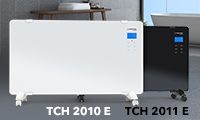 I convettori TCH 2010 E e TCH 2011 E erogano entrambi una potenza di riscaldamento fino a 2.000 Watt, regolabile su 2 livelli. Le superfici frontali in vetro di sicurezza, resistenti ai graffi e particolarmente facili da pulire, ospitano dei pannelli touch integrati sotto i display a LED retroilluminati. Come già anticipato inizialmente, tramite i pannelli, ma anche mediante il telecomando fornito, è possibile regolare tutte le funzioni.
