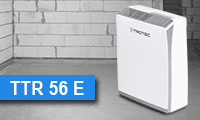 Il nuovo deumidificatore ad assorbimento TTR 56 E si adatta perfettamente all’impiego in locali interni di piccole dimensioni con una superficie fino a 12 m² non riscaldata o riscaldata solo temporaneamente. L’intervallo di lavoro dell’apparecchio è compreso tra 0° e 32°C e già ad una temperatura ambiente di 5°C raggiunge livelli estremamente efficienti – con una capacità di deumidificazione fino a 9 litri al giorno. Ciò fa di questo deumidificatore il vostro partner ottimale per la deumidificazione di case vacanze, seconde case, yacht, barche a vela, scantinati, garage o solai.