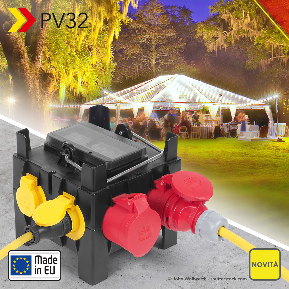 NUOVO distributore di corrente portatile PV32 sia per uso interno che esterno nei cantieri o in occasione di eventi – finalmente disponibile