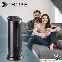 L’accattivante TFC 19 E dalla forma a torre slanciata, con i due livelli di riscaldamento regolabili da 1.200 e 2.000 watt, riscalda in modo rapido e silenzioso anche uffici e abitazioni di dimensioni maggiori, giardini d’inverno o addirittura serre. Una volta impostato il termostato tramite la manopola a regolazione continua, la temperatura ambiente desiderata viene regolata in modo completamente automatico. Il calore immediato viene rilasciato per mezzo del ventilatore integrato e l’oscillazione a 70° attivabile con entrambi i livelli di riscaldamento accresce ulteriormente l’efficacia grazie al meccanismo di orientamento orizzontale che distribuisce l’aria calda nell’ambiente in maniera ancora più rapida ed omogenea.