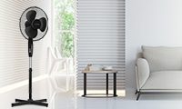È facile tenere lontano il calore: basta collocare l’apparecchio a casa o sul posto di lavoro, dove si necessita un raffrescamento. Le funzioni comfort come la regolazione dell’altezza da 110 a 129 cm in maniera continua, l’angolo di inclinazione regolabile della testa del ventilatore fino a 30°, nonché l’oscillazione a 90° automatica con funzione di spegnimento semplificano la scelta del luogo adatto. Adesso basta solo inserire la spina e godersi il piacevole fresco.
