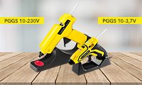 Il dispositivo PGGS 10-230V assicura una disponibilità all’utilizzo in tempi rapidi grazie all’elemento termico a regolazione elettrica e una temperatura di lavoro costante di 200 gradi Celsius grazie alla produzione di materiale fuso nell’esercizio continuo a 25 watt. L’avanzamento meccanico della cartuccia di colla consente sia un dosaggio perfetto, sia un’applicazione mirata e veloce della colla. Se manca un allacciamento elettrico nelle vicinanze, un accumulatore di calore integrato consente anche un utilizzo in mobilità senza cavi della durata di circa mezz’ora. La ricarica ha luogo posizionando in tutta semplicità il dispositivo nel relativo supporto o collegandolo al cavo di rete. La staffa di appoggio assicura il posizionamento sicuro al di fuori del supporto, mentre un’indicazione a LED dello stato segnala la disponibilità all’utilizzo.
