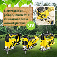 - il seghetto alternativo PJSS 11-230V comprensivo di guida parallela, adattatore per aspirazione esterna della polvere, protezione antischegge, pattino di scorrimento, tre lame per legno e una lama per metallo a soli 29,95 € anziché 43,88 €,
