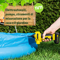Grazie alla sua elevata portata di max. 45 m³, la pompa dell’aria a batteria è perfettamente adatta per gli articoli più grandi. Nella dotazione sono compresi gli adattatori per i diversi bocchettoni di riempimento. La pratica pompa PCPS 11‑16V con funzionalità 2 in 1 può essere utilizzata anche per l’aspirazione dell’aria. In tal modo potrete sgonfiare completamente i vostri articoli gonfiabili in tutta comodità.
