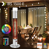 Non sarebbe una svolta anche per la vostra terrazza? Calore accogliente accompagnato da una luce d’atmosfera: la stufetta a colonna a infrarossi IRS 1500 E per terrazze unisce entrambe le caratteristiche in un unico dispositivo. L’illuminazione ambiente a LED all’estremità superiore coccolerà voi e i vostri ospiti diffondendo una luce regolabile e d’atmosfera, sempre in linea con i vostri gusti. Tramite il telecomando infatti è possibile scegliere da una gamma di 16 colori e 4 effetti luminosi. Cosa ne pensate?