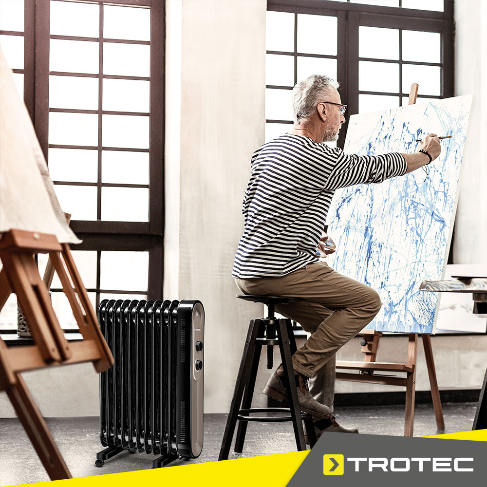 U wilt ook in de koude maanden onverwarmde plaatsen zoals de hobbykamer in de kelder of de werkplaats in de garage gebruiken? Of u verlangt gewoon naar een extra portie knusse warmte in uw leesstoel? Kijk dan eens naar de olieradiator TRH 24 E. Het kleine zwarte apparaat rolt elegant naar de gewenste plaats en straalt er warmte uit zijn dikke ribben: met een krachtige power van 2.200 watt. Met maximaal vermogen na een korte opwarmtijd en een prijs waar u niet aan kunt weerstaan!