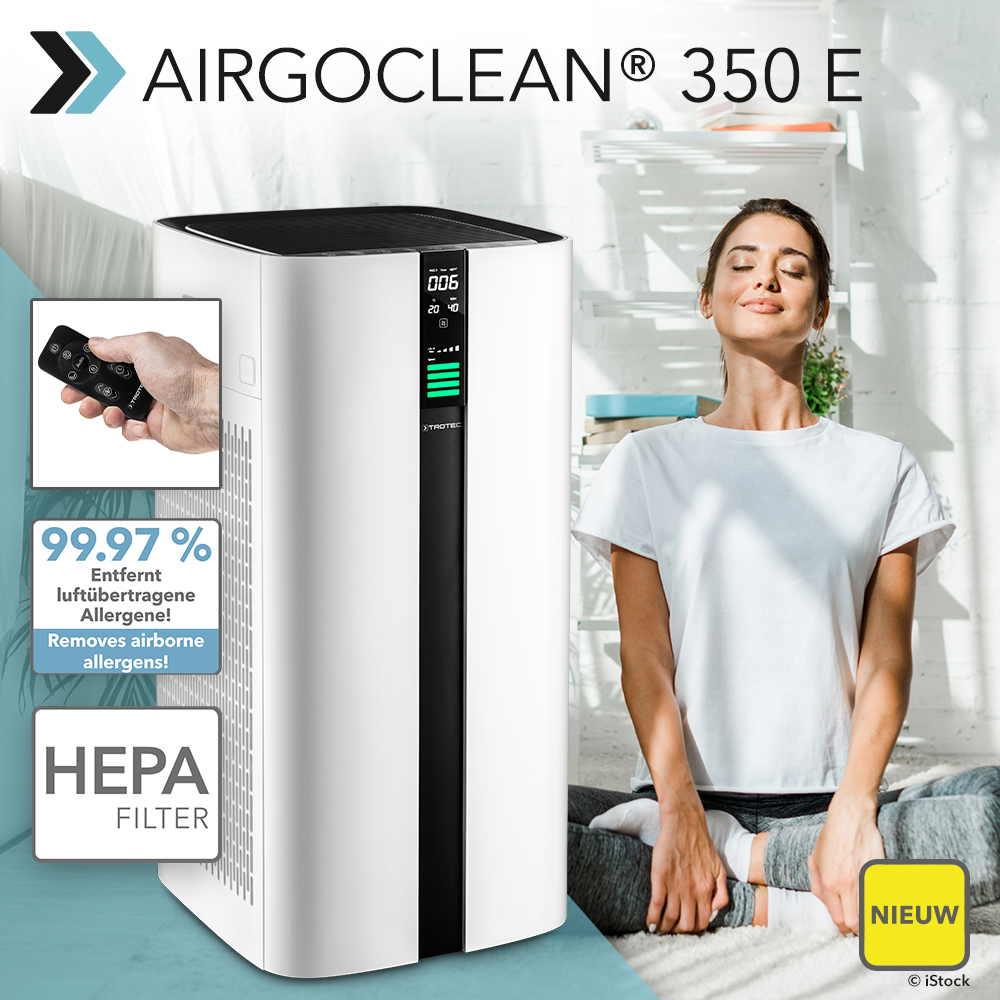 Zuivere lucht binnen de eigen vier muren is voor u en uw familie even belangrijk als onbelaste ruimtelucht op kantoor voor u en uw collega’s. Allergenen, bacteriën, virussen zoals SARS-CoV-2 en influenza, schimmelsporen, stofmijten en het gevreesde fijnstof verontreinigen elke ruimtelucht en verhinderen zo dat men zorgeloos kan in- en uitademen. Bescherm daarom uzelf en al wie u dierbaar is met HEPA-gefilterde lucht: de luchtreiniger AirgoClean® 350 E verwijdert al wat belastend werkt: tot 99,97% van de ultrafijne deeltjes tot 0,3 µm. Volledig automatisch dankzij de modernste ‘air quality-sensoren’.