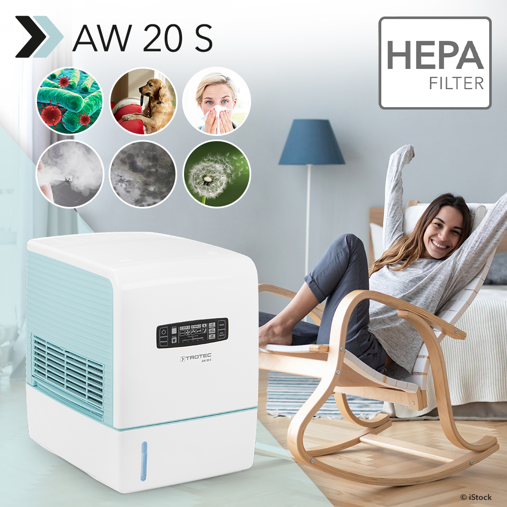 Men hoeft geen helderziende te zijn om te kunnen voorspellen dat het aantal coronabesmettingen weer zal toenemen zodra het koeler wordt in de herfst. Iedereen kruipt dan naar binnen en houdt ramen en deuren gesloten – ideale omstandigheden voor de lang in de ruimtelucht rondzwevende besmettelijke aerosolen. Met de eindelijk opnieuw leverbare luchtwasser AW 20 S beperkt u echter op duurzame wijze het infectierisico, want het 3-in-1 comfortapparaat zorgt voor perfect bevochtigde en gereinigde lucht. Bovendien maakt het activeerbare HEPA-filter de lucht vrij van pollen, stof en virussen.