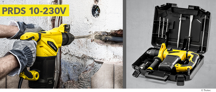 Van gaten boren in beton of graniet tot oude tegels wegslaan, kabelsleuven leggen of een muurtje doorslaan: onze eindelijk weer leverbare krachtpatser, de boor- en beitelhamer PRDS 11-230V, staat met overtuigende prestaties aan uw zijde door dik en dun. Dankzij de robuuste aluminium overbrenging en de pneumatische klopboor is hij de ideale oplossing voor langdurig gebruik bij verbouwings-, installatie- en breekwerkzaamheden.