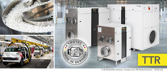 De drogers van de TTR-serie met een hoge capaciteit, die voor industrieel gebruik zijn ontworpen, staan garant voor een effectieve continue ontvochtiging met hoge capaciteiten, ook bij lage dauwpunten. Alle apparaten zijn al in de standaarduitvoering door combinatie van allerlei opties probleemloos te configureren voor uiteenlopende operationele eisen. Maar voor wie dat wil bieden wij ook oplossingen die op maat worden gemaakt – met TTR-aggregaten die perfect zijn afgestemd op de behoeften van uw bedrijf.