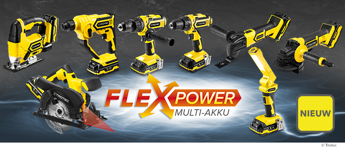 De meeste doe-het-zelvers en klussers stellen de comfortabele bewegingsvrijheid van elektrische apparaten met accu erg op prijs. Ze kunnen dan werken zonder kabels die hen storen of meteen in de war raken. Tot dusver had elk apparaat echter niet enkel zijn eigen accu nodig, maar ook zijn eigen lader. Gedaan daarmee, wat dat leidt tot onnodige kosten en belast het milieu. Onze oplossing is het accu-verwisselsysteem van Trotec: een Flexpower-multiaccu voor vele apparaten!