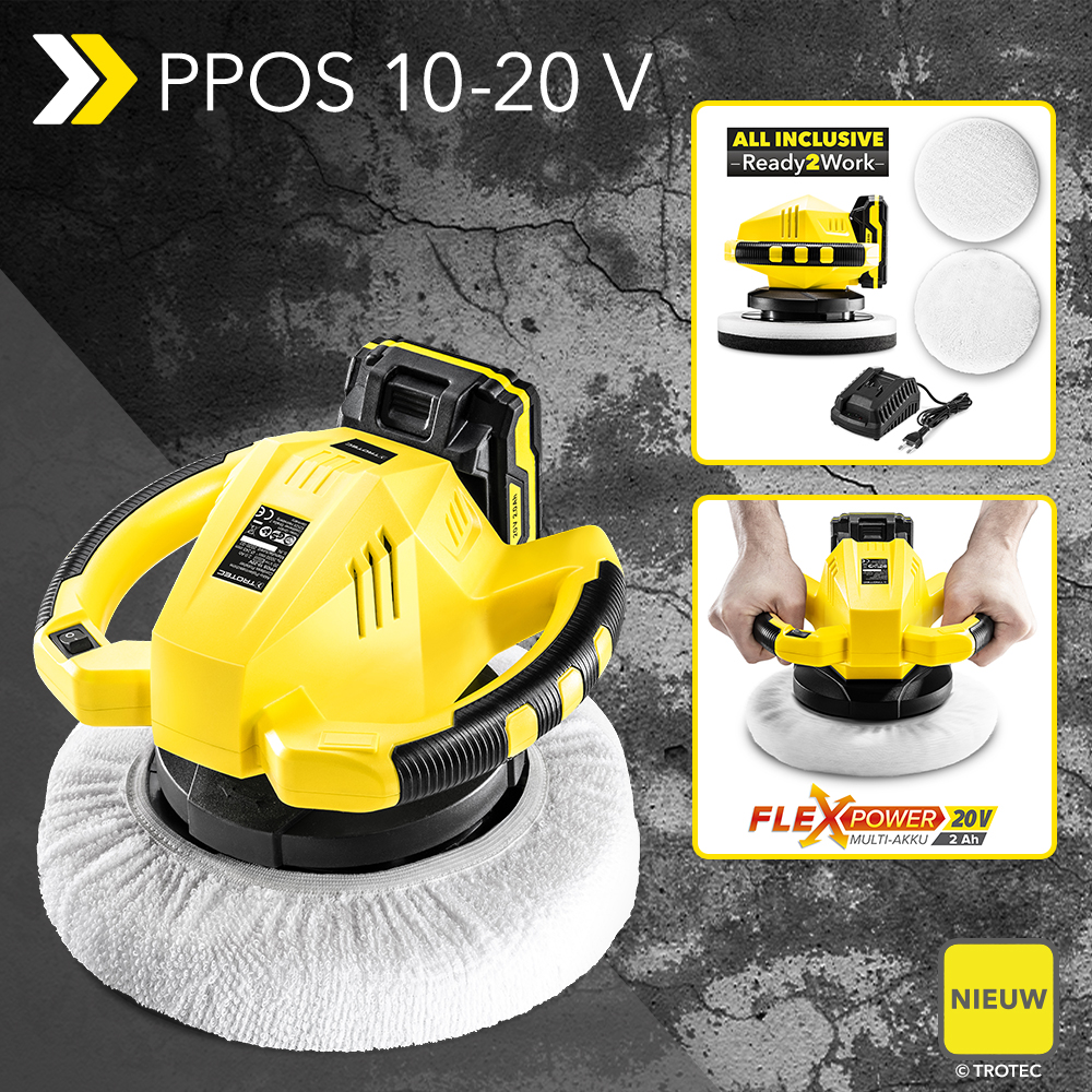 NIEUW Accu-excenter-polijstmachine PPOS 10‑20V met 3.000 omw/min, 245 mm grote polijstschotel en inclusief 2 polijsthoezen – eindelijk beschikbaar