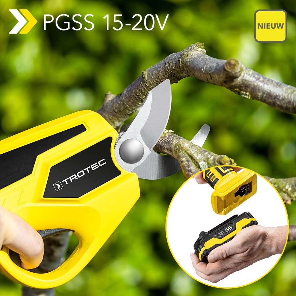De herfstmaanden staan garant voor plezier in de tuin: tijd bijvoorbeeld om de heesterperken eens aan te pakken om er ook in het komende jaar in volle pracht van te kunnen genieten. Ook moeten de zo mooie maar helaas verwelkte dahlia’s worden afgesneden en fruitbomen, bessenstruiken en siergewassen bij eventuele schimmel worden gesnoeid tot aan het gezonde hout. Maar goed dat de nieuwe accu-tuinschaar PGSS 15-20V eindelijk weer te verkrijgen is. Door haar krachtige motor en messcherpe blad raakt u probleemloos door het meest weerbarstige hardhout en kunt u zichzelf na afloop snel belonen met een koel drankje.