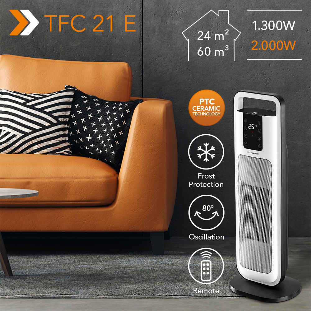 Met de keramische ventilatorkachel TFC 17 E haalt u snel en aangename warmte in huis. Dit apparaat levert energiezuinige directe warmte zonder opwarmtijd, waardoor het de perfecte keuze is voor tijdelijk gebruik in tussenseizoenen of als aanvullende verwarming op bijzonder koude dagen. Het beste van alles: de kachel heeft een optionele 60° oscillatiefunctie die de warme lucht gelijkmatig door de kamer verspreidt. Koude voeten? Die behoren tot het verleden!