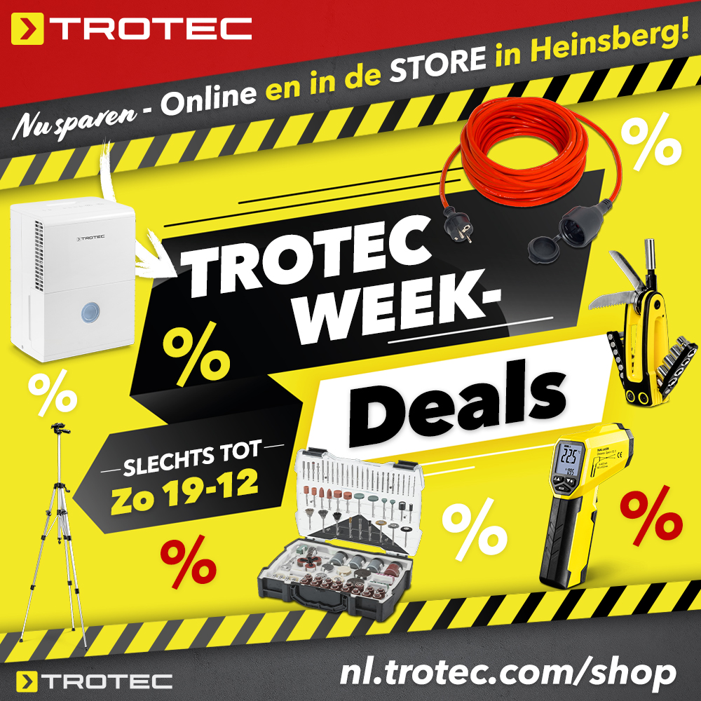 Gepost in TROTEC, Actueel | Getagged Aanbiedingen, Afstandsmeter, Bandschuurmachine, Heinsberg, Koopjes, bitset, luchtbevochtiger, luchtreiniger, trotec, videoscoop, weekdeals |
