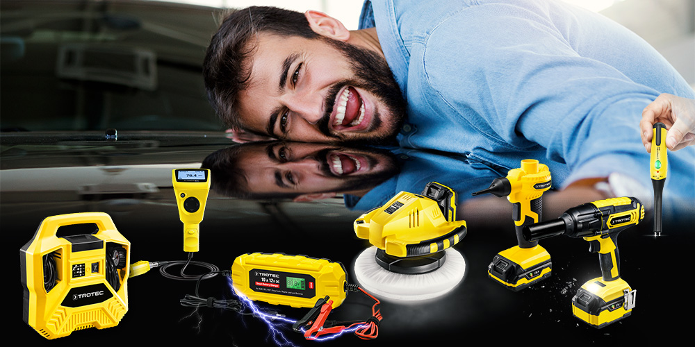 In onze blogserie ‘Auto-accessoires voor een perfecte seizoensstart’ stellen we u robuuste, duurzame en veelzijdig inzetbare powertools van Trotec voor – het voordelige antwoord op alle vragen en vereisten bij het onderhoud, de verzorging en reparatie van motorvoertuigen.