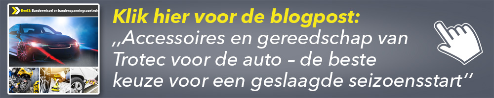 In onze blogserie ‘Auto-accessoires voor een perfecte seizoensstart’ stellen we u robuuste, duurzame en veelzijdig inzetbare powertools van Trotec voor – het voordelige antwoord op alle vragen en vereisten bij het onderhoud, de verzorging en reparatie van motorvoertuigen.
