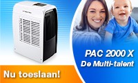 De ruimte koelen, daarbij lucht ontvochten en filteren, de ruimte verwarmen… de nieuwe airconditioner PAC 2000 X is een echt multi talent. Daar er maar een aantal stuks nog beschikbaar zijn, betekent dat snel toeslaan, voordat alle voor de zomer weg zijn – voor een spaarprijs van slechts 279,95 €! En voor slechts 15 € meer ontvangt u de PAC 2000 X met de raamafdichting Airlock 100 meteen in spaarpakket.
