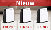 Direct drie nieuwe ontvochtigers in de TTK-E compact klasse, nu leverbaar! Met hun geweldige technische faciliteiten, zijn comfortabele kenmerken en een prima prijs-kwaliteitverhouding, behoren ze allemaal tot onze nieuwe top producten. De apparaten zijn qua afmetingen en functies gelijk, onderscheiden zich echter in de dagelijkse ontvochtigingscapaciteit en ook in prijs.