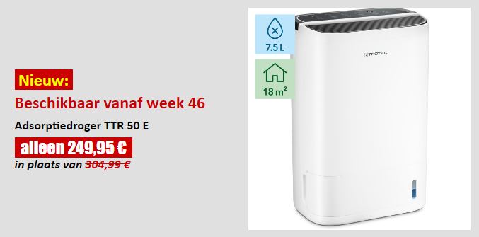 Op onze homepage in de online winkel nl.trotec.com/shop worden alle “TOP DEALS” weergegeven, navigeer eenvoudig met de pijlen naar “rechts” en “links” en je vindt alle lopende deals.