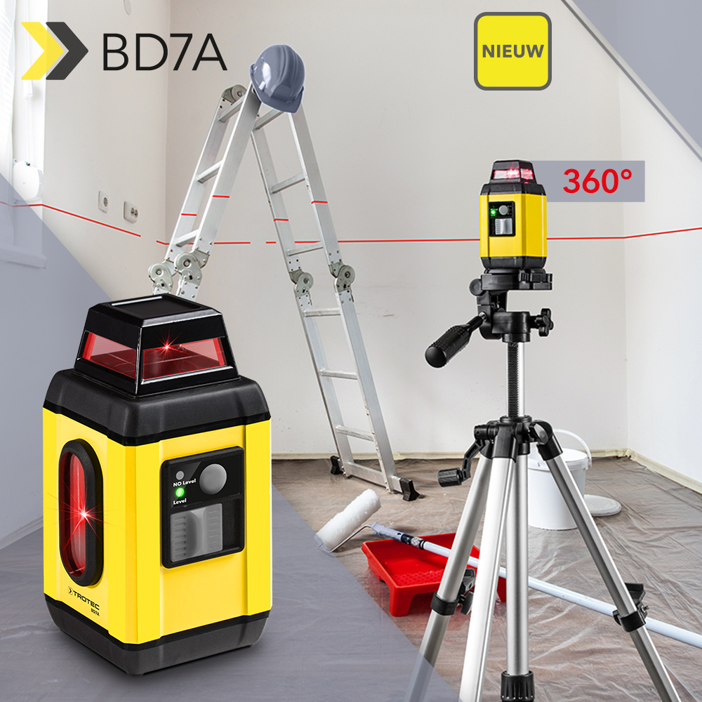 Elke professional en elke doe-het-zelver weet dat het in rechte lijn aanbrengen van wandkachels, verfstroken en hangende kasten, of het boren van exact geplaatste dubbele gaten in een wand op dezelfde hoogte nogal problematisch kan zijn. Dankzij de nieuwe 360° rotatielaser BD7A is het onhandige gefriemel met waterpas en potlood nu voorgoed voorbij: dit meetapparaat met accu is meteen overal inzetbaar voor zowat alle decoratie- en montagewerkzaamheden – en dat aan de vier wanden tegelijk!