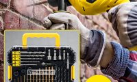 - 1 x gereedschapskoffer met uitklapbare boorhouders, praktische draaggreep en veiligheidsslot