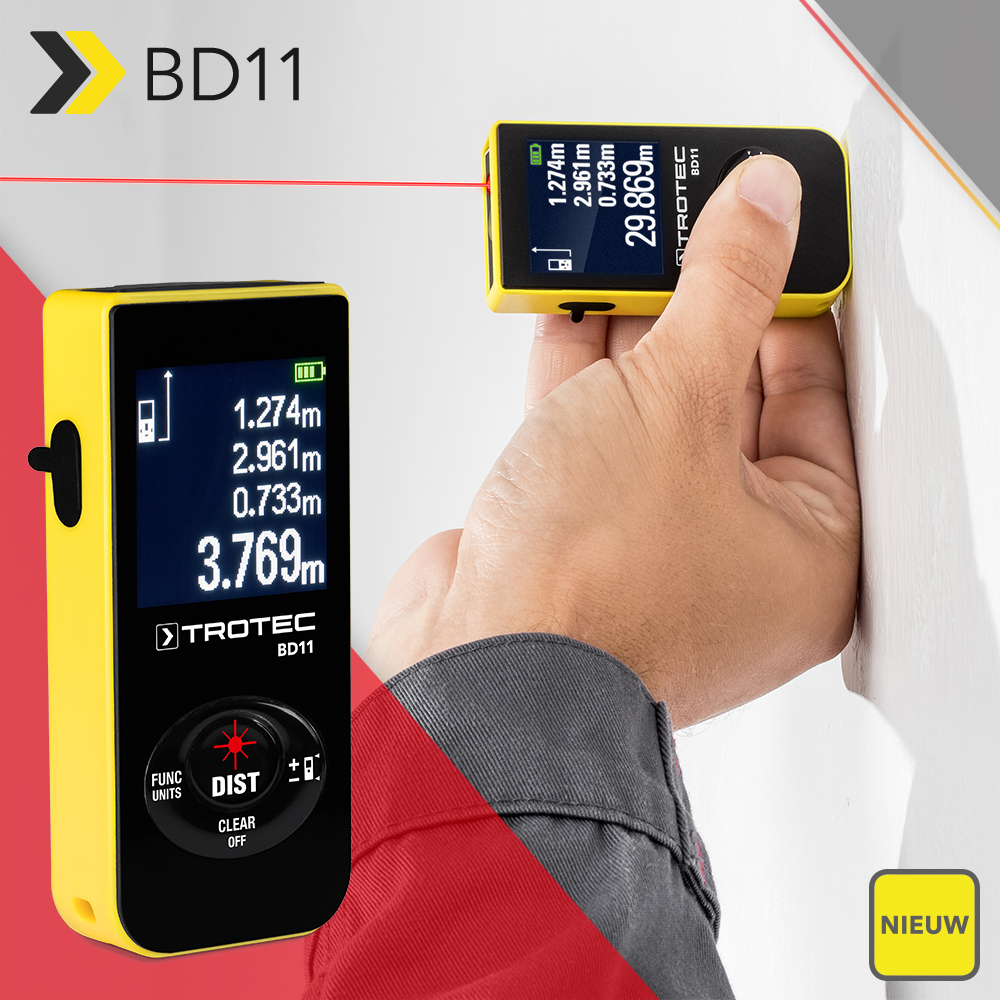Bestel het beste vandaag nog de nieuwe afstandsmeter BD11 voor onze actuele aanbiedingsprijs van i.p.v. € 39,95 nog slechts € 19,95 incl. btw – nu in de Trotec-Shop!