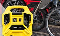 Of u nu snel de bandenspanning van uw auto of motor wilt controleren, de slappe fietsband wilt oppompen of de voetbal goed op spanning wilt brengen: met de olievrije compressor PCPS 10‑1100 van Trotec vormen deze lastige klusjes voortaan geen probleem meer. Met een vermogen van 1.100 watt en bedrijfsdruk van 8 bar kunt u snel, eenvoudig en met sterke druk oppompen.