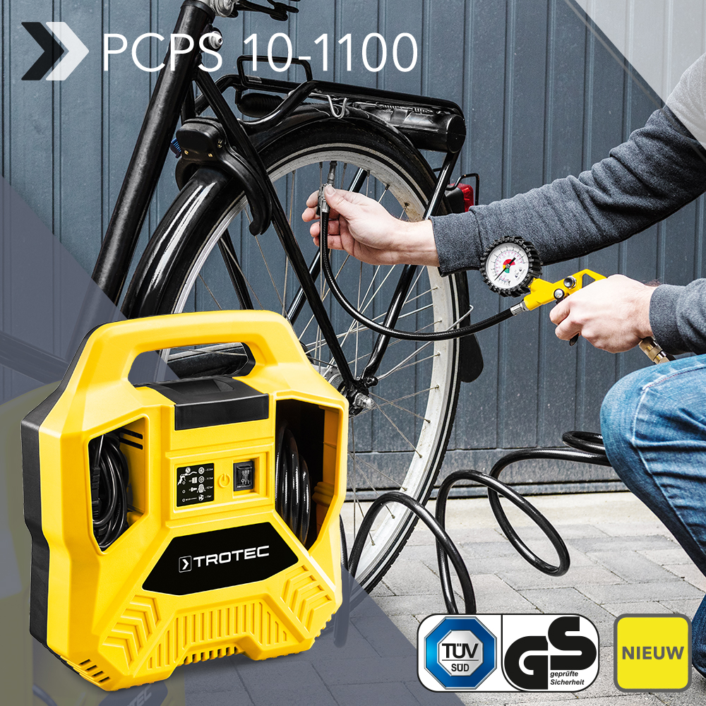 Bestel het beste vandaag nog de nieuwe compressor PCPS 10 1100 voor onze actuele aanbiedingsprijs van i.p.v. € 84,95 nog slechts € 49,94 incl. btw – nu in de Trotec-Shop!