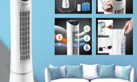 De propellorventilator met 3 standen kan desgewenst ook zonder inschakelen van de koelfunctie worden gebruikt. De automatische oscillatie, waarbij het bovenste gedeelte van de behuizing 90° heen en weer draait, zorgt ervoor dat de koele lucht gelijkmatig wordt verspreid in de gehele ruimte. Met de handmatig instelbare horizontale lamellen kan de richting van de uitgeblazen luchtstroom naar eigen behoefte worden aangepast.
