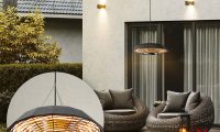 De volgens beschermingsklasse IP45 voor 100 procent regendichte plafondstraler IR 2010 SC uit gepoederlakt aluminium verenigt alles wat u van een verwarmingsoplossing voor het buitengedeelte van uw horecazaak of terras in de eigen woning kunt verwachten. Het apparaat overtuigt met zijn mooi vormgegeven veelhoekig ontwerp en een 2.000 watt sterk vermogen; de naar beneden uitgestraalde warmte 360° rondom van het 46 cm grote reflectiescherm verwarmt ruimten tot 12 m². Met de handige IR-afstandsbediening kan de halogeenstraler comfortabel op afstand geregeld worden. Bovendien maakt de clevere combinatie van straalkachel en plafondverlichting van de IR 2010 SC een ideale oplossing in buitenomgevingen.