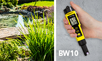 Het nieuwe pH-meetinstrument BW10 geeft u de mogelijkheid, dankzij de automatische temperatuurcompensatie en de auto-kalibratiefunctie in het temperatuurbereik van 0 tot  50 °C, de pH-waarde tussen 0 en 14 nauwkeurig te bepalen. Daardoor kunt u onmiddellijk vaststellen of het water in het zwembad of in de pool te zuur of te alkalisch is – en daarmee allegische reacties van uw badgasten van het begin af aan voorkomen. En of de natuurvijver zich nog steeds in een natuurlijk evenwicht bevindt – want door regen of bijvullen met leidingwater kan de pH-waarde steeds weer de tolerantiegrens voor vissen overschrijden naar een zuur (pH < 0) of een basisch (pH > 7) milieu.