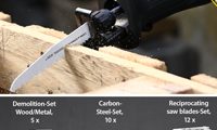 - een 12-delige reciprozaagbladset voor hout, hout met nagels en metaal
