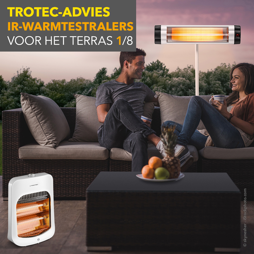 De dagen worden weer korter en de avonden koeler. Ook op uw terras! Stilaan merkt u dat het binnen aangenamer is. Dat is echter geen reden om uw terras nu al op te ruimen. Uzelf en uw gasten kunnen er in 2019 zeker nog van genieten! Waarom zijn de moderne infrarood-warmtestralers van Trotec er anders? Met dergelijke apparaten geniet u ook ’s avonds buiten van een knusse warmte. Waarop u bij de aankoop moet letten, verneemt u in deze en de volgende afleveringen van onze Trotec-adviseur.