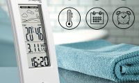 Met één blik weet u wat er buiten zoal gebeurt: op basis van de luchtvochtigheidswaarden maakt de thermohygrometer BZ06 een voorspelling. Het grote LCD-scherm toont u met 4 opvallende weersymbolen direct of het zonnig, licht bewolkt, bewolkt of regenachtig wordt. Als 4-in-1 combi-apparaat biedt het design-weerstation naast de weertrendfunctie ook de weergave van ruimtetemperatuur en luchtvochtigheid, datum en tijd, evenals een wekmodus met comfortabele sluimertoets (snooze).