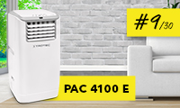 - Met de airco PAC 4100 E is elke wissel van plaats van inzet zonder problemen mogelijk. Het wisselen van gebruiksplaats, bijv. tussen slaap- en woonkamer, is dankzij de licht lopende rollen en de ergonomisch gevormde handgreepverdiepingen snel gebeurd. Een praktisch opbergvak voor het snoer vergemakkelijkt het wegbergen van het apparaat na het koelseizoen.