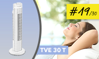 De TVE 30 T past met zijn modern zuilontwerp naadloos in elke kantoor- en woonomgeving. Met een vermogen van maximaal 45 watt verplaatst de torenventilator in een uur een luchtmassa van ongeveer 1790 m³. De koeling ontstaat plaatsbesparend door het draaien van de lamellenconstructie en in tegenstelling tot de gewone ventilatoren met rotorblad wordt de lucht over de volledige hoogte van het apparaat uitgestoten.