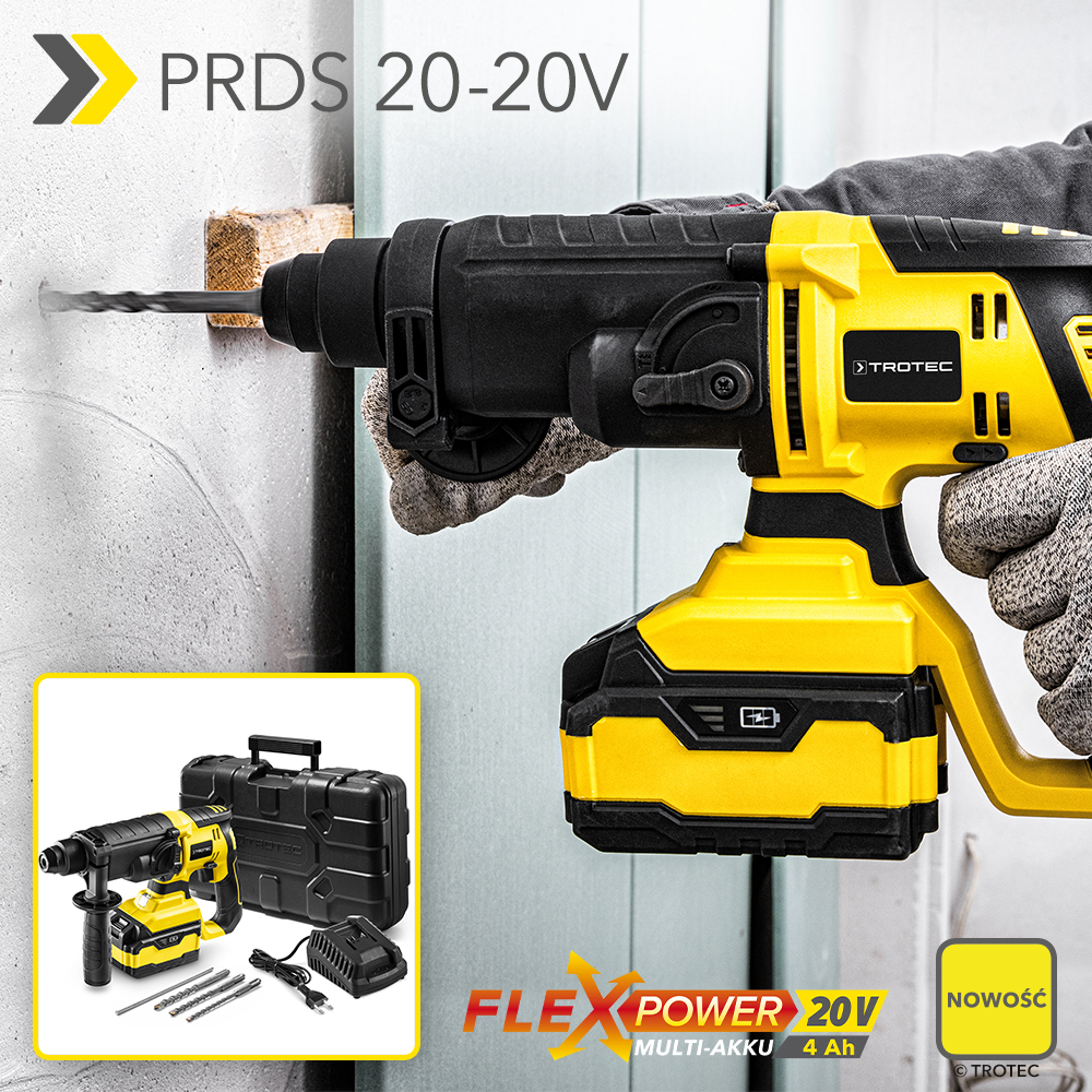 Opublikowano TROTEC, Aktualności | Otagowano Akumulatorowa młotowiertarka, Akumulatorowa młotowiertarka PRDS 20‑20V, Flexpower, młotowiertarkę akumulatorową, nowość, sklepie Trotec |
